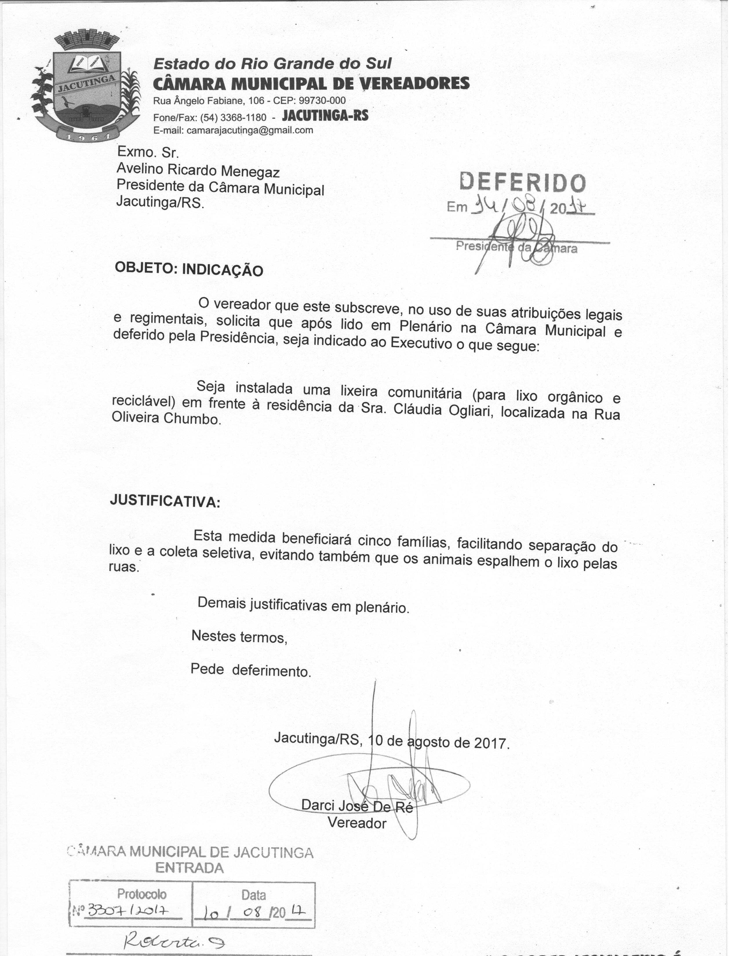 Solicitação de instalação de lixeira comunitária da Rua Oliveira Chumbo